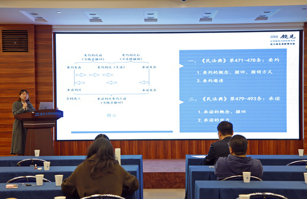 ????????《中華人民共和國民法典》是新中國成立以來第一部以“法典”命名的法律,是新時代我國社會主義法治建設的重大成果,民法典在中國特色社會主義法律體系中具有重要地位,是一部固根本、穩預期、利長遠的基礎性法律。袁勝寒主任以習近平總書記對民法典重大意義的論述作為開篇,提綱挈領地給大家介紹《民法典》的發展歷史、重大意義、創新內容等,讓大家了解《民法典》整體框架。同時從水利行業特點出發,給大家介紹水利行業以及工程建設等領域涉及《民法典》相關法律條款知識,讓與會人員進一步加深了對法律條文的理解和認識。隨后,事務所另外兩位律師結合具體案例,生動形象介紹了合同編、婚姻家庭編和繼承編的相關內容,為大家厘清在招投標過程中、各類合同訂立與履行過程中可能遇到法律風險,以及在日常生活中可能遇到的各類法律問題,豐富了大家的法律視野。會后,幾位律師還為一些同事進行了法律咨詢指導。